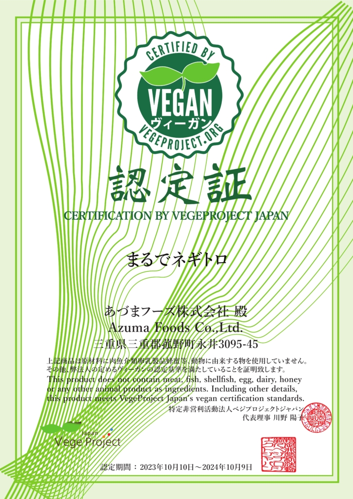 【お知らせ】まるでネギトロがヴィーガン認証を取得しました