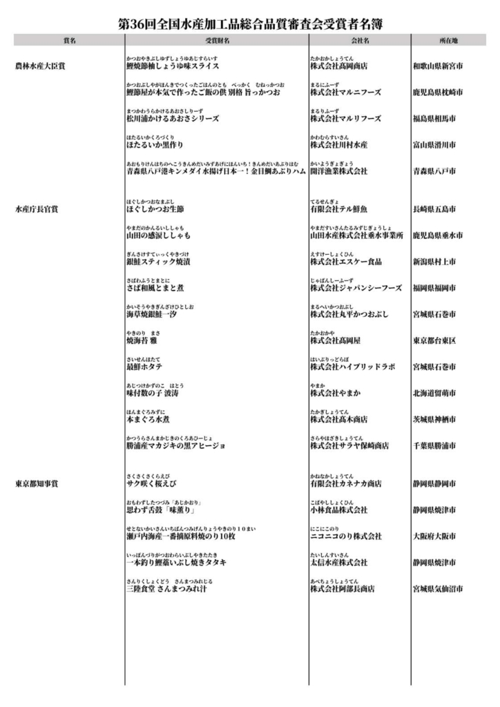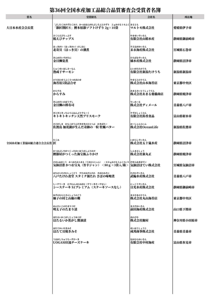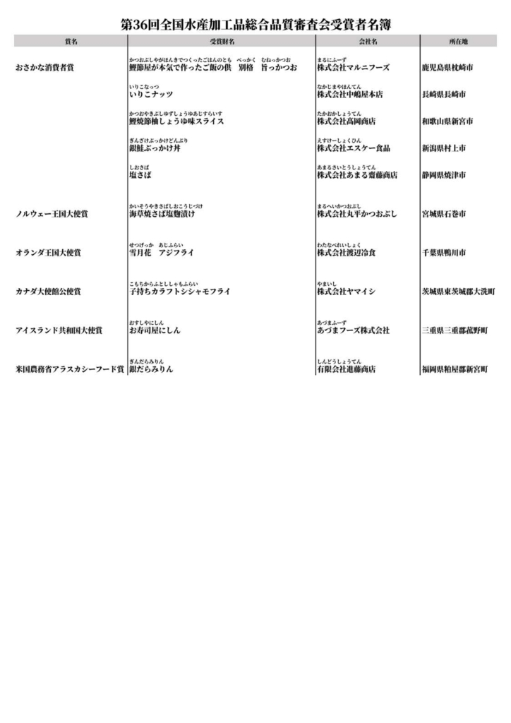 第36回全国水産加工品総合品質審査会アイスランド共和国大使賞受賞