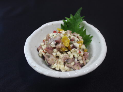 生のいいだこを本格コチュジャンを使用し甘辛味のユッケに仕上げました。